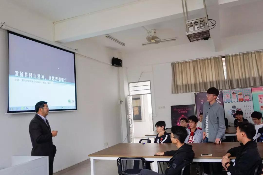 十大正规买足球网站梁善经理在美术楼408教室以“学习井冈山精神”为主题,为2017级环境设计专业新生上了一堂生动的党课。