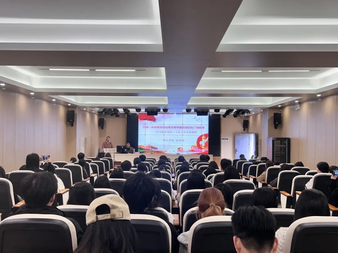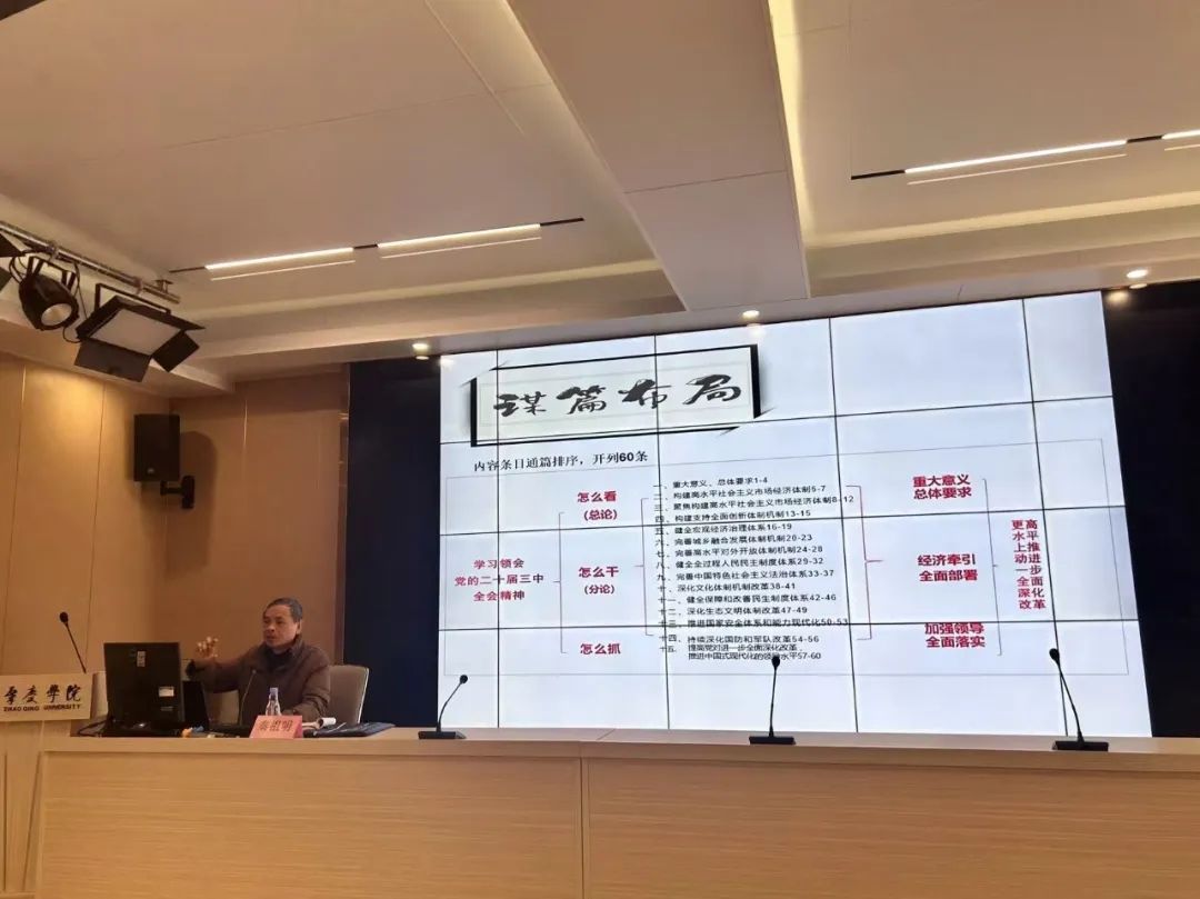 为进一步深入学习宣传贯彻党的二十届三中全会精神,动员广大师生凝心聚力、奋发进取,12月27日,十大正规买足球网站组织召开了党的二十届三中全会精神宣讲会,邀请公司宣讲团成员、马克思主义公司秦祖明博士,为公司师生党员讲授主题为“以进一步全面深化改革开辟中国式现代化广阔前景——学习领会党的二十届三中全会精神”的专题宣讲,公司师生党员和入党积极分子代表共90余人参会。宣讲会由公司党委副书记胥家桢主持。