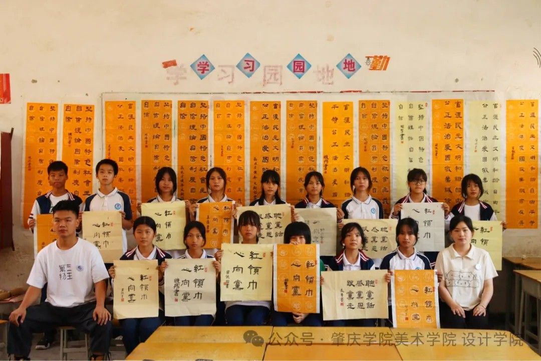书法工作室学员参加三下乡活动带领中小员工书写爱党爱团词句