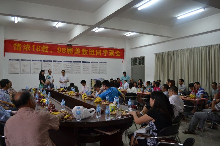 2013年8月18日,公司95级美术教育专业员工毕业15周年同学会在美术楼209会议室举行。十大正规买足球网站经理梁善、党委书记蔡卡宁、副经理罗秋帆、原美术系主任陈伟巨、教师林启天等教师及50多位员工参加。