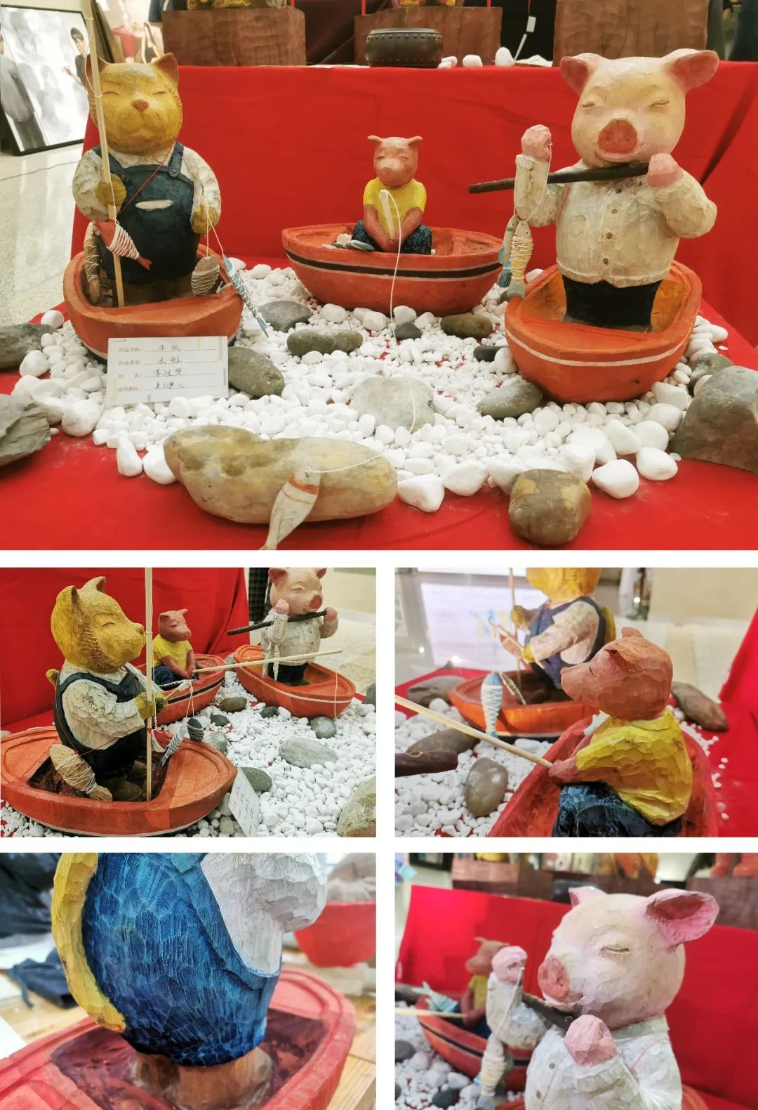 作品采用高浮雕、低浮雕、线刻、镂空、圆雕等多种雕刻技法,使得在独特的造型上细看也能呈现作品本身所表达的内容。能与观众形成互动,让观众了解到作品的内涵,建立一定的情感互动。