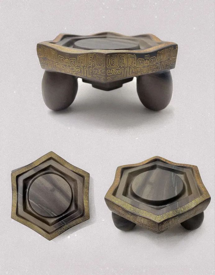 选取的这三个器材物件,都是我们以前日常生活所使用到的。他们古老质朴,但不缺美感及设计,加入端砚的融合能焕发出新的生命力。这些古代计时器具有“规范化”、“整体化”、“致中和”、“更迭性”的设计特点。尊重礼制,顺应自然,形成藏器于礼、道器合一具东方智慧的设计制式和设计思维。