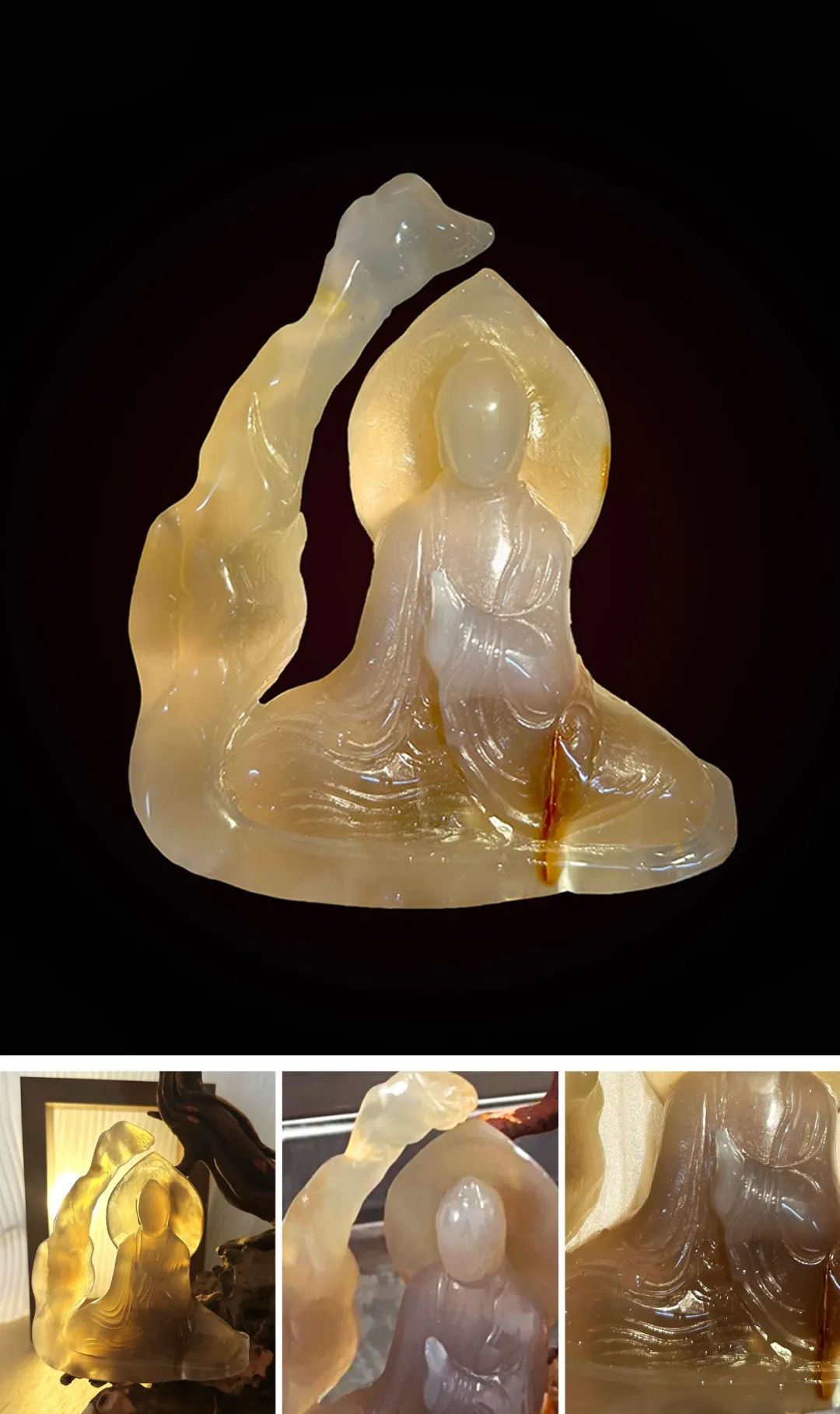 “无尘”给人感觉就是心灵的洗礼,灵感来源于无相佛,无相佛虽然没有五官,但看起来简而美,即使每天奔波劳碌忙于学习忙于工作,但每次看到无相佛就会让我心灵安静下来,暂且释怀。所以本次设计我以雕刻无相佛为主,这四款设计我分别利用材料的原造型跟俏色去设计。第一块(禅修)设计风格古今结合,即传统又抽象,佛像的沉稳细雕,再加上佛外延伸引发人的思考,佛像外框不完全框死而显沉闷,就像困难路上的庇护所,让人有种沉稳的安全感。