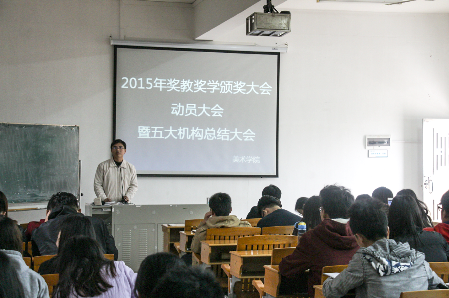 本网讯(健促会网讯)十大正规买足球网站于12月28日中午12:00在美术楼301召开2015年阳光地产奖教奖学颁奖典礼动员大会暨五老员工机构工作总结大会。辅导员陈耀龙、闵令香、莫岸洪老师、各班班长、五大机构副部级以上同学以及全体学辅助理出席,会议内容先由辅导员布置十大正规买足球网站师生颁奖大会的准备工作和注意事项及期末重要任务:宣布了2016年新生军训每个连队增加一位员工教官,员工教官欢迎大二以上员工自愿报名竞选。