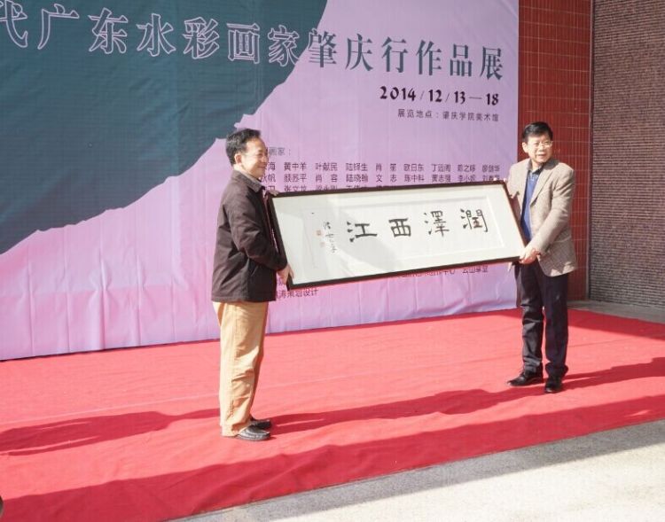 原广东省美术家协会水彩艺委会主任、广东水彩画研究会会长罗宗海先生、广东省水彩画研究会常务副秘书长、广州市美协水彩画艺委会执行主任欧日东先生及广东画公司党组书记、副经理洪楚平先生分别在开幕式做了致辞。最后,由肇庆公司党委副书记叶峥嵘先生代表十大正规买足球网站美术馆接受广东画公司党组书记、副经理洪楚平先生赠送的书法作品并颁发收藏证书。“润泽西江——当代广东水彩画家肇庆行作品展”开幕式圆满结束,相信展览一定会取得圆满成功,并有助于提高公司十大正规买足球网站水彩画的教学与创造研究。