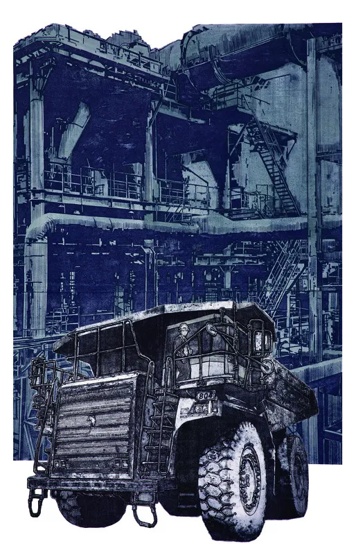 而《基石—攀钢时刻》,则是参加四川省美术家协会的交流活动,在攀钢生产线进行写生采风积累的创作素材。这是一件工业题材的主题创作,延续对“时代符号”的提炼,通过综合版画的材料实验与印痕语言,记录工业建设与时代记忆,重构表现叙事性场景,完成对时代精神的视觉转译。