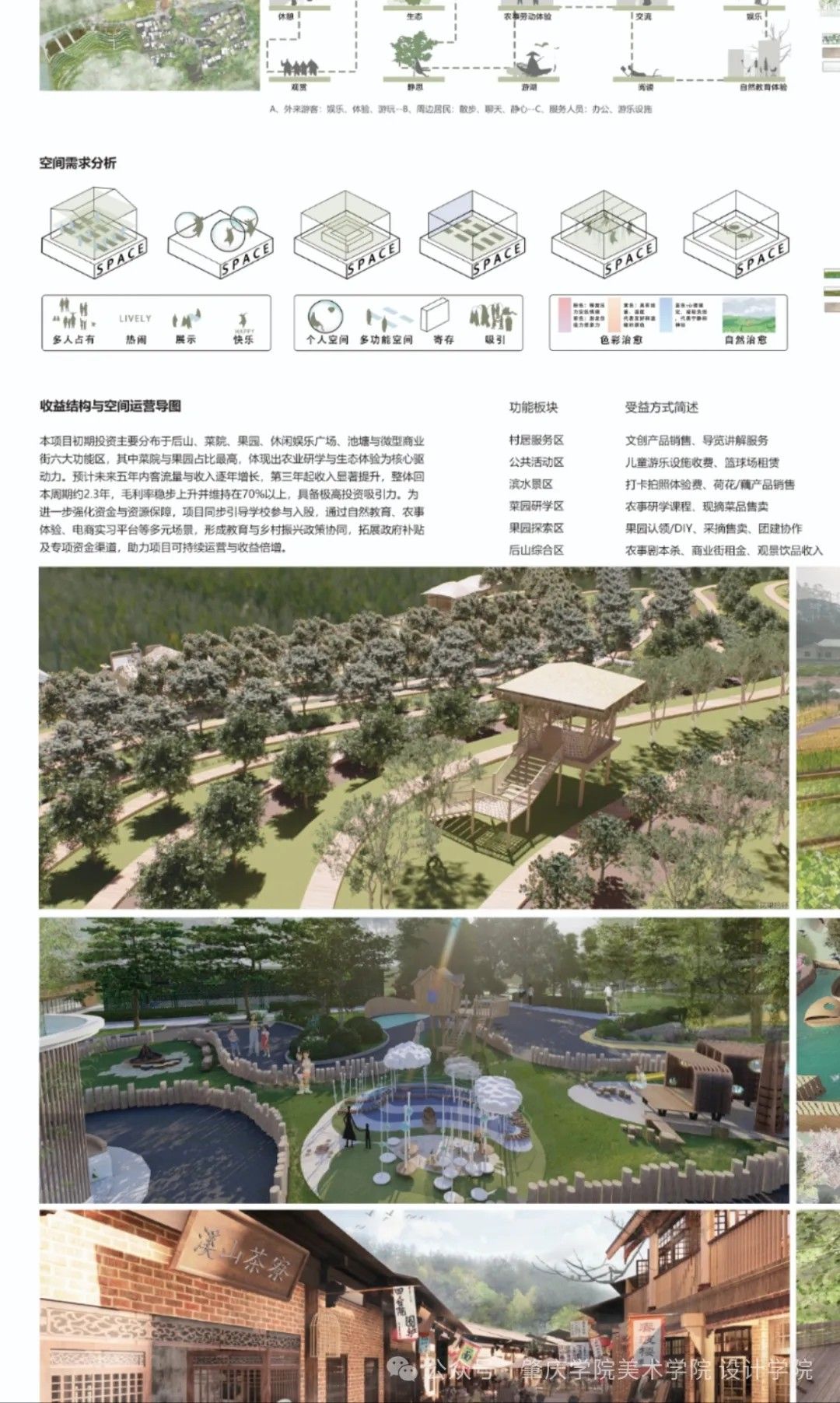 参与本次比赛是一次扎根乡土、打磨方案、突破自我的过程。我们从田野出发,深入调研,亲身走进村落,感受到乡村既丰富又沉睡的教育资源,也意识到“纸上方案”要真正落地并不容易。从构想到图纸、从策划到运营,每一步都在不断试错和重构中提升。作为一支跨专业的本科团队,我们在实践中学会协作、沟通与坚持,更在一次次答辩与打磨中找到了“让理想落地”的路径。我们始终相信,乡村不仅是资源地,更是未来教育的新场域。这次比赛,是我们走向这条探索之路的起点,而不是终点。