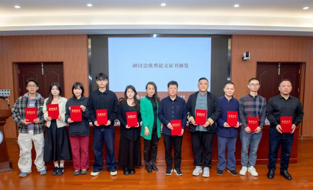 开幕式上还举行了优秀论文颁奖仪式。经学术委员会严格评审,王建华、齐增升等 23 位作者的论文获评优秀论文。陈建国、李琴分别为两组成果论文代表颁发证书,向他们为砚文化研究付出的辛勤努力致以祝贺。