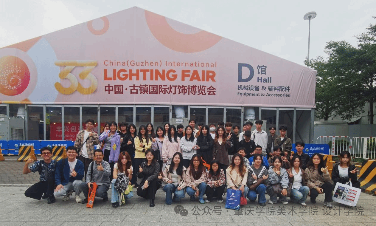 活动首站聚焦中国・古镇国际灯饰博览会,员工们在展区内系统了解当前灯具行业的发展动态与前沿设计趋势。始于1999年的中国・古镇国际灯饰博览会,立足“中国灯饰之都”的千亿产业集群优势,以“古镇灯饰,照亮世界”为主题和“专业化、市场化、国际化”为定位,打造展店联动、线上线下一体化的全产业链展贸平台,是吸引全球超百个国家和地区客商、引领行业发展的标杆盛会。从商用照明系统到家居装饰灯具,从传统风格到极简设计,同学们结合专业知识与展区工作人员深入交流,直观感受产品设计在材质选择、功能创新、场景适配中的实践应用,进一步明晰行业对设计人才的需求方向。