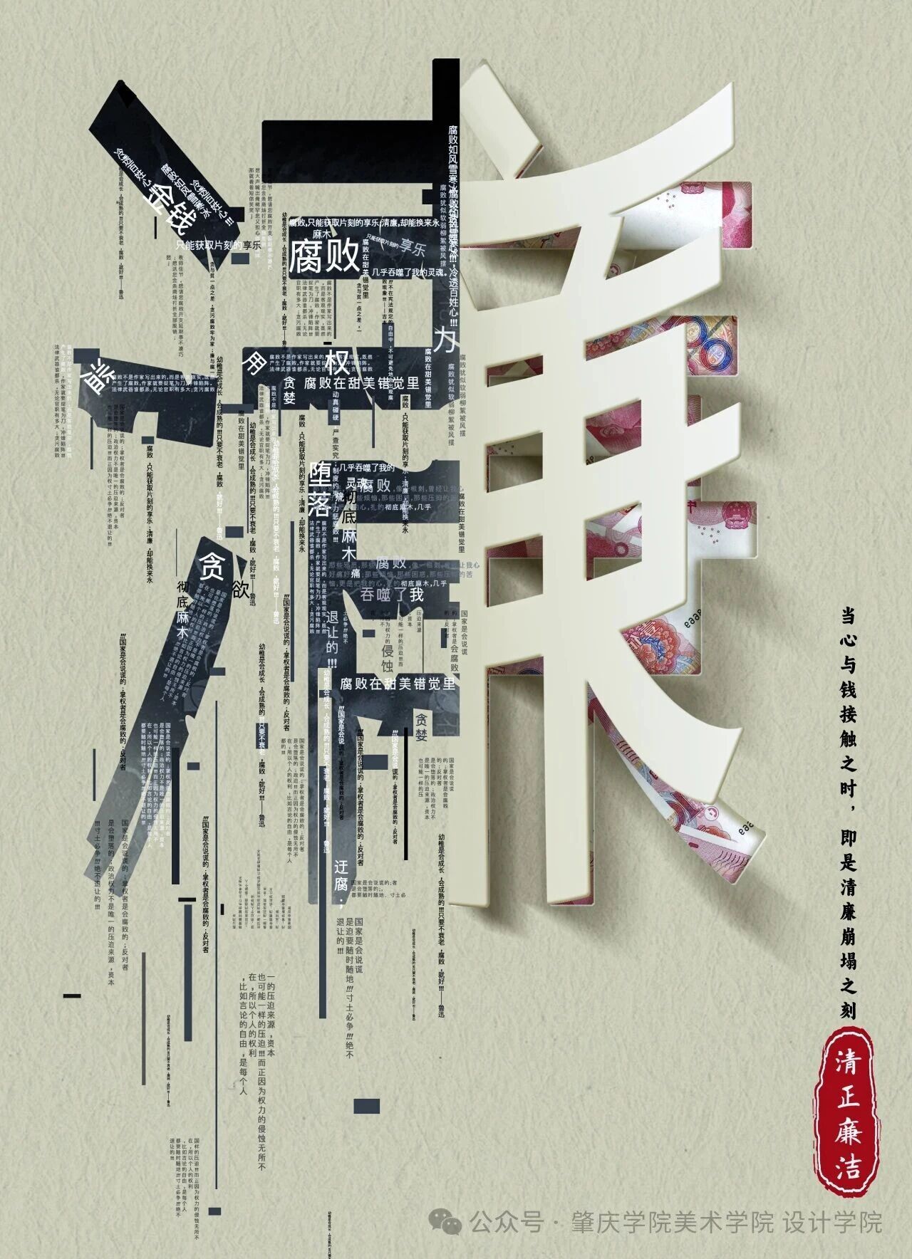 活动期间,全院师生热情响应,积极将专业特长融入廉洁教育。在“绘廉铸魂”创意作品征集环节中,师生们从校园风物、校史佳话、古籍典故与文物符号中汲取灵感,创作出一大批主题鲜明、形式多样的优秀艺术作品。这些作品涵盖书法、创意海报、文创设计等,将抽象的廉洁理念,化为可视、可感的艺术语言,于方寸之间诠释清廉内涵。