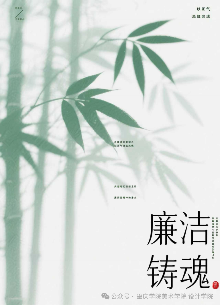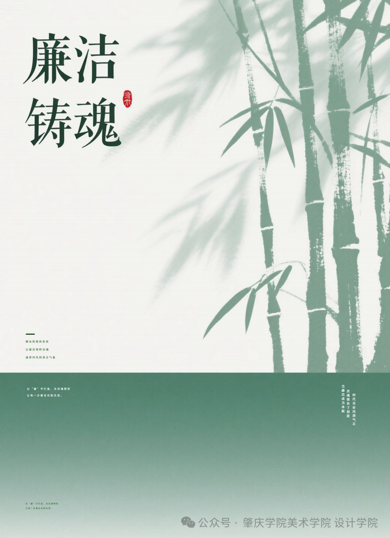 海报设计均以竹子为核心元素,用竹子的传统文化内涵寓意清正廉洁的风骨,再通过不同的搭配和创意,凸显廉洁铸魂的理念。可根据实际需求调整颜色、字体和元素的细节,以达到最佳的视觉效果。