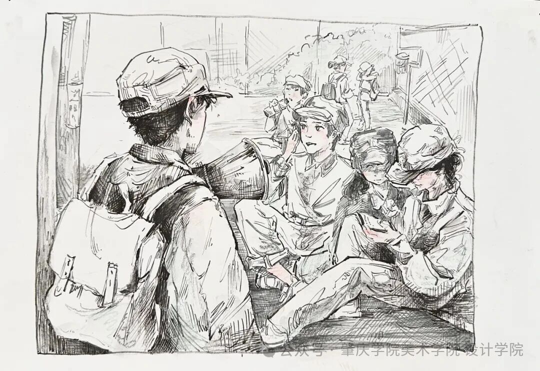 以碎片化视角捕捉军训生活中的点滴:阳光下闪烁的汗珠、整齐划一的步伐、休息时的欢声笑语……每一笔都是对迷彩青春的深情凝视。