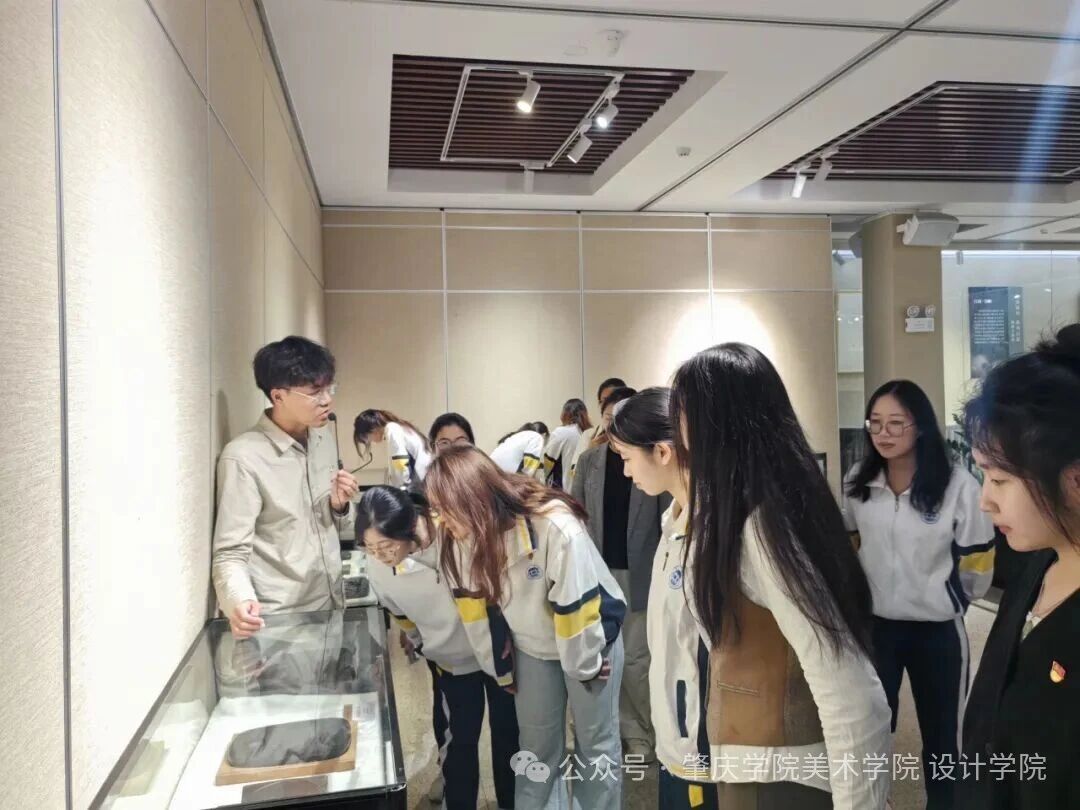 全体师生党员首先参观了“砚上生花 砚向未来——第二届砚台创新创意邀请展”暨“匠心传承——当代端砚精品展”。在展厅中,大家不仅欣赏了承载厚重历史的传统砚雕,更被充满巧思的当代端砚文创作品所吸引。