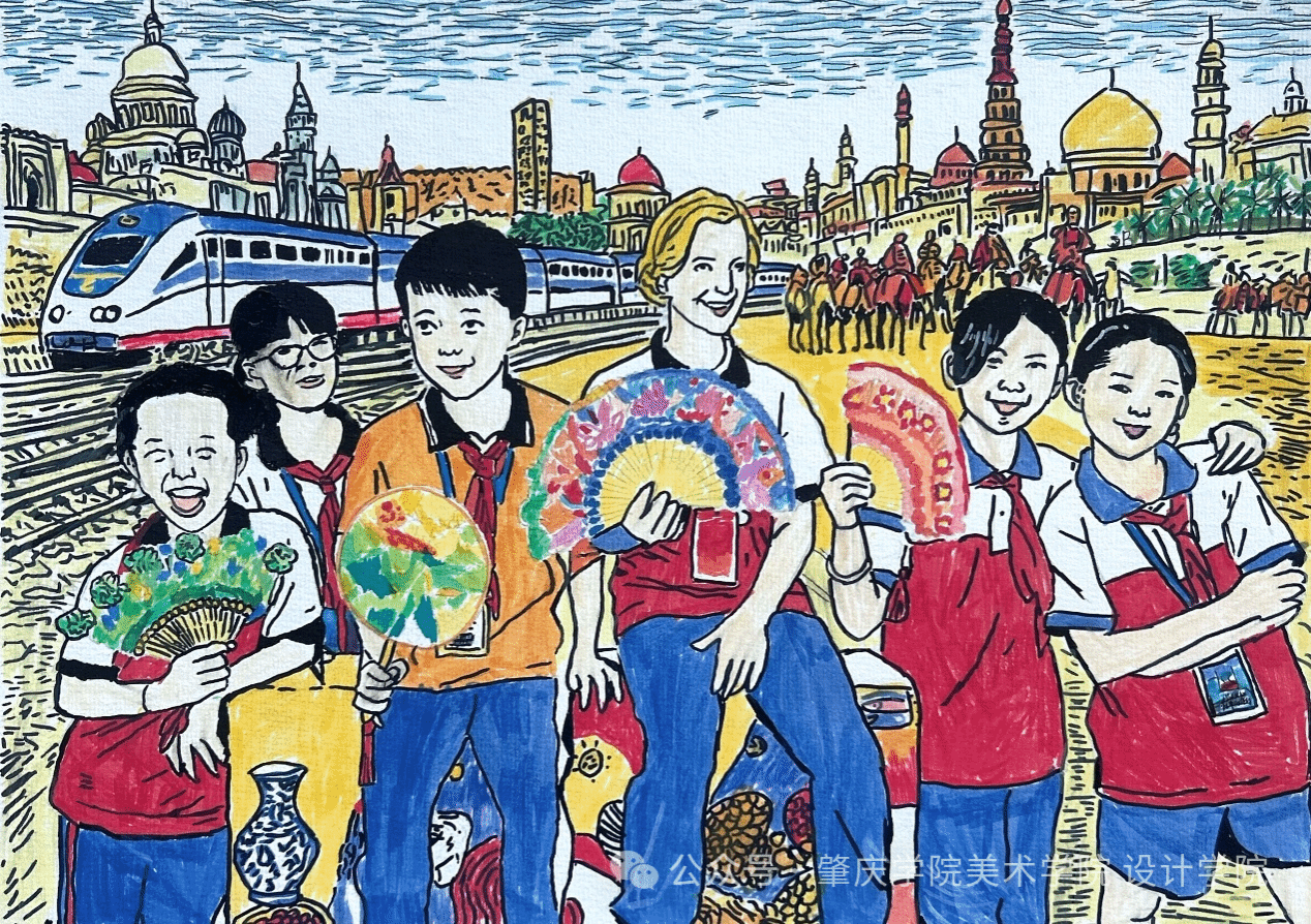 展览方面,公司配合公司统筹推进,由吴君茹老师具体指导,联动鼎湖区凤凰公司(“双百行动”项目)、四会市黄田公司、龙湾公司(“美育浸润”项目)以及云浮市云城区思劳镇中心小学、腰古镇中学(“三所公司”项目)共5所合作公司开展主题创作。师生围绕“利玛窦”“中欧班列”“丝绸之路”“中外少年儿童”四大主题,累计创作作品130幅。经评选,每校各有一幅作品入选全球首展线下单元。