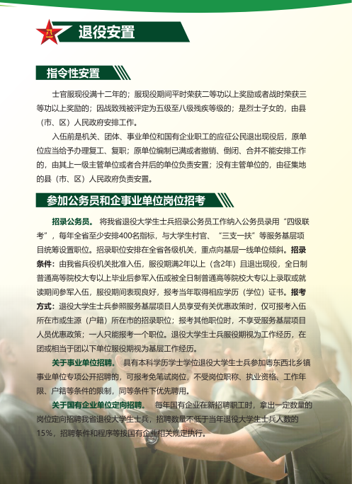 《中华人民共和国宪法》规定:“依照法律服兵役和参加民兵组织是中华人民共和国公民的光荣义务”。部队是青年员工成长成才的大公司,是砥砺品格、增强意志的好课堂,是施展才华、成就事业的大舞台。国防和军队现代化建设,迫切需要一大批有责任、敢担当的有志青年携笔从戎、报效祖国。现寄上应征报名方式、条件及系列优惠政策,供参考。望有志青年踊跃应征!