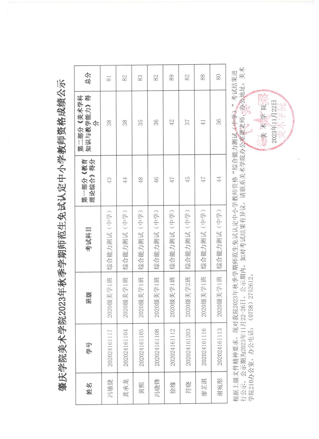 根据上级文件精神要求,现对公司2023年秋季学期师范生免试认定中小学教团队格“综合能力测试(中学)”考试结果进行公示,公示期为2023年11月22-26日。公示期内,如对考试结果有异议,请联系十大正规买足球网站办公室梁老师,办公地址:十大正规买足球网站210办公室,办公电话:(0758)2752612。