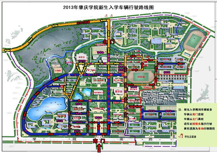 1.新生入学报到期间,公司采用“南门进,北门出”的方式进行交通疏导(详见附件),除迎新车辆外,教职工及其他车辆一律从北门出公司。请各单位务必通知本单位车主按上述规定行驶。